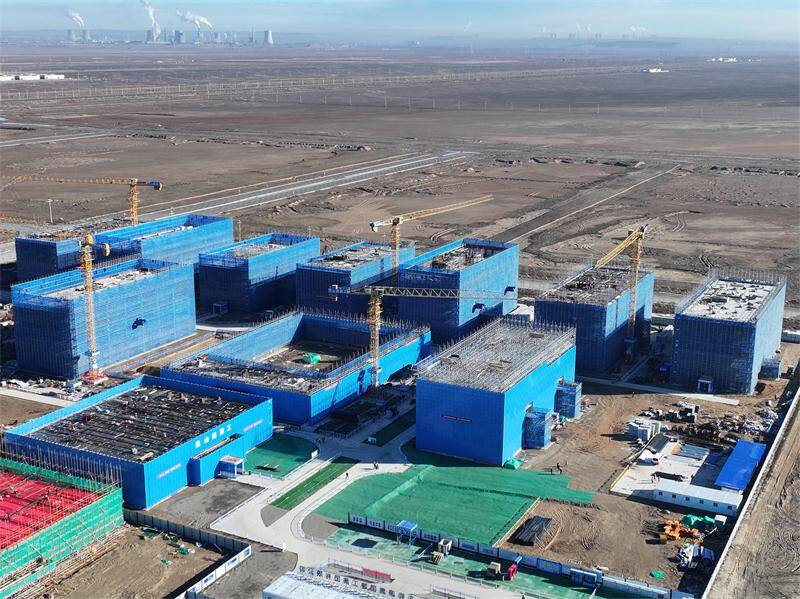 11月22日,随着五彩湾生活服务基地项目文体中心屋面板混凝土徐徐入模,三十七处五彩湾综合生活服务基地项目11个单体全面封顶。